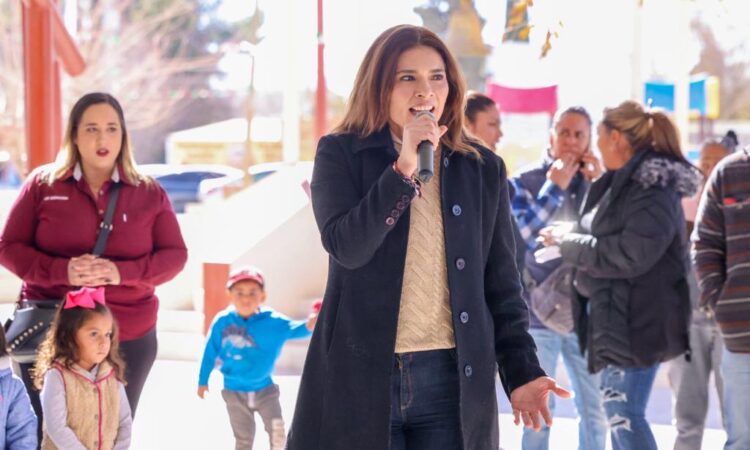 “Estamos muy contentas y contentos de estar aquí en Samalayuca haciendo esta entrega de chamarras para niñas y para niños y cobijas para las personas mayores”, mencionó la señora Enríquez.