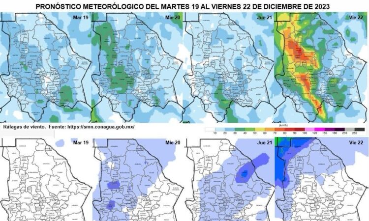 En cuanto a las lluvias, la dependencia indicó que pueden ser de dispersas a moderadas (de 5.1 a 25 mm) en Madera, Gómez Farías, Namiquipa, Temósachic, Ocampo y en Maguarichi de aisladas a dispersas (de 2.1 a 5 mm).