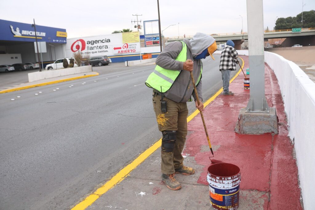 Chihuahua, Chih.- Con el objetivo de mejorar la imagen urbana, así como la visibilidad para los conductores, el Gobierno Municipal, a través de la Dirección de Servicios Públicos, trabaja en la colocación de pintura en la avenida Teófilo Borunda.