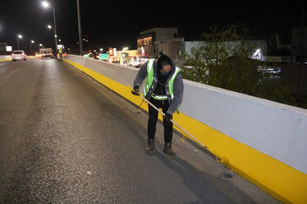Estos trabajos comenzaron a realizarse en el sentido del periférico de la Juventud con rumbo a la vialidad Sacramento, a la altura de la calle María Luisa, tanto en la parte de banquetas del bajo del puente, como en la parte superior del mismo.