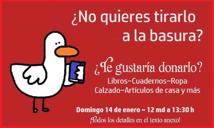 La campaña de acopio será el domingo 14 de enero, en horario de 12:00 a 1:30 de la tarde, dio a conocer personal de la biblioteca.