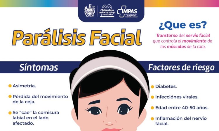 El Gobierno Municipal de Chihuahua, encabezado por el alcalde Marco Bonilla, a través del Instituto Municipal de Prevención y Atención a la Salud (IMPAS), emite las señales para reconocer la parálisis facial, con el fin de promocionar una detección oportuna y recibir el tratamiento adecuado.