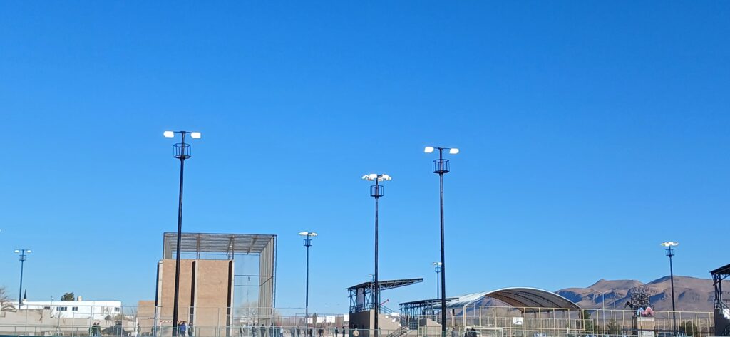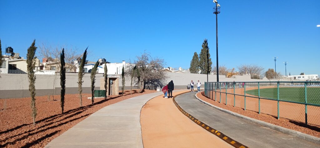 Rodolfo Armendáriz, titular de obras públicas, informó que en esta primera etapa se intervendrá en un total de 4.5 hectáreas de construcción, en las que contará con estacionamiento para 180 vehículos, un carril vehicular de incorporación sobre la Vialidad Sacramento, andadores interiores y áreas deportivas como lo son: – Un campo de softbol con baños, regaderas y dog-out- 3 canchas de usos múltiples de concreto con un módulo de gradas- Una cancha de handball de concreto- Una cancha de futbol 7×7 de pasto sintético- Una cancha de frontón- Dos canchas de raquetbol – Un área de juegos infantiles- Área de aparatos para ejercicio- Área de mesas para ajedrez- Circuito de Corredores, andador peatonal y ciclista de 780 metros de largo- Edificio administrativo e iluminación led en toda el área de construcción.