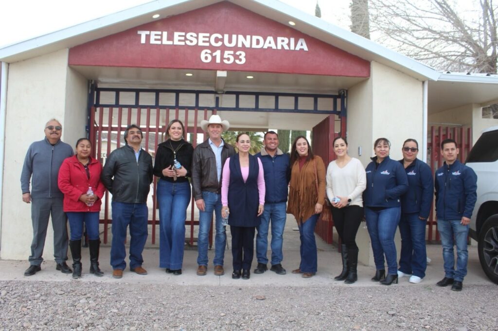 Galeana, Chih.- La diputada por el Partido Acción Nacional (PAN), representante del Distrito 01, Yesenia Reyes, en compañía de la Secretaria de Educación y Deporte, la Mtra. Sandra Gutiérrez Fierro, asistió al municipio de Galeana para inaugurar tres aulas escolares en la Telesecundaria #6153 de la colonia Lebaron, así como para la entrega de uniformes escolares, mobiliario y calentones de gas a escuelas federales y estatales de nivel básico de la región noroeste.