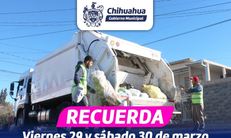 El servicio se estará el lunes 1 de abril en los horarios y frecuencias regulares, por lo que se invita a la ciudadanía a tomar las previsiones necesarias. De igual forma, se informa que el relleno sanitario permanecerá cerrado los próximos viernes 29, sábado 30 y domingo 31 de marzo.