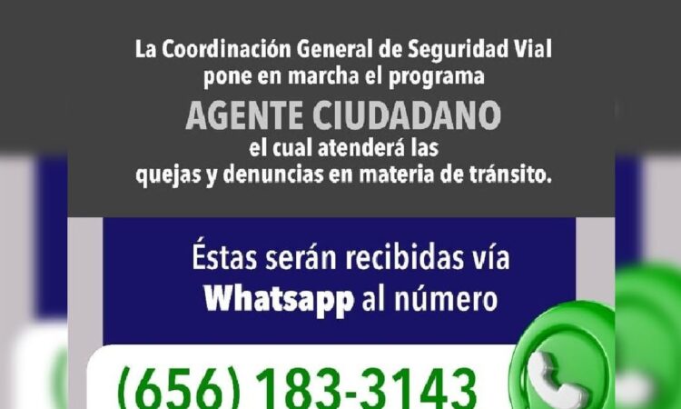 Con el objetivo de beneficiar a la comunidad juarense, la Coordinación General de Seguridad Vial mantiene vigente el programa de Agente Ciudadano en su horario habitual de lunes a domingo de las 08:00 a 20:00 horas.