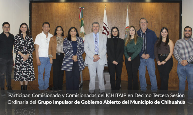 El Comisionado Presidente del Instituto Chihuahuense para la Transparencia y Acceso a la Información Pública (ICHITAIP) Sergio Rafael Facio Guzmán, junto a las Comisionadas Karla Gabriela Fuentes Moreno y Selene Prieto Domínguez, participaron en la Décimo Tercera Sesión Ordinaria del Grupo Impulsor de Gobierno Abierto, en el que participan el Municipio de Chihuahua y las organizaciones sociales Centro de Liderazgo y Desarrollo Humano (CELIDER), COPARMEX y CITES.