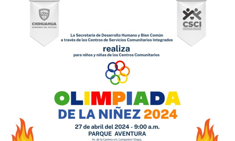 Como parte de las actividades con motivo de la celebración del 30 de abril, los centros comunitarios de la Secretaría de Desarrollo Humano y Bien Común, realizarán la “Olimpiada de la Niñez 2024”, este sábado 27 a partir de las 9:00 horas.