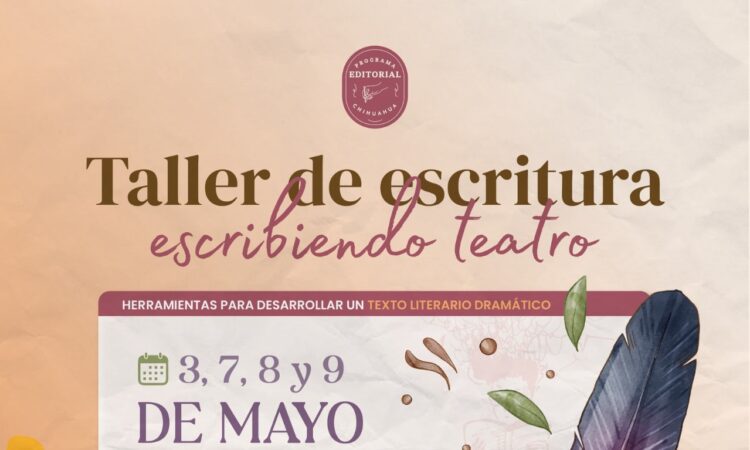 El Gobierno Municipal de Chihuahua, a través del Instituto de Cultura del Municipio, invita a la comunidad a participar en el taller de escritura “Escribiendo Teatro”, donde se brindarán las herramientas necesarias para desarrollar un texto literario dramático.