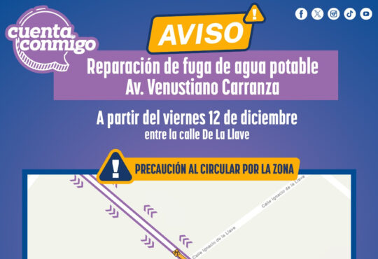 Reparará JMAS Chihuahua línea de agua potable en la avenida Venustiano Carranza.