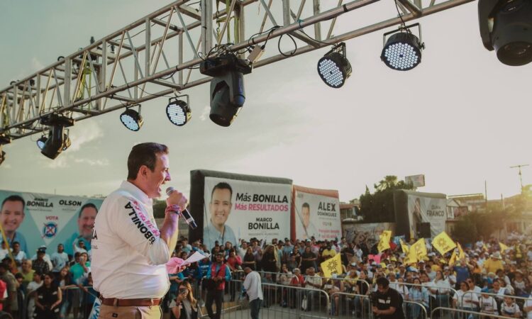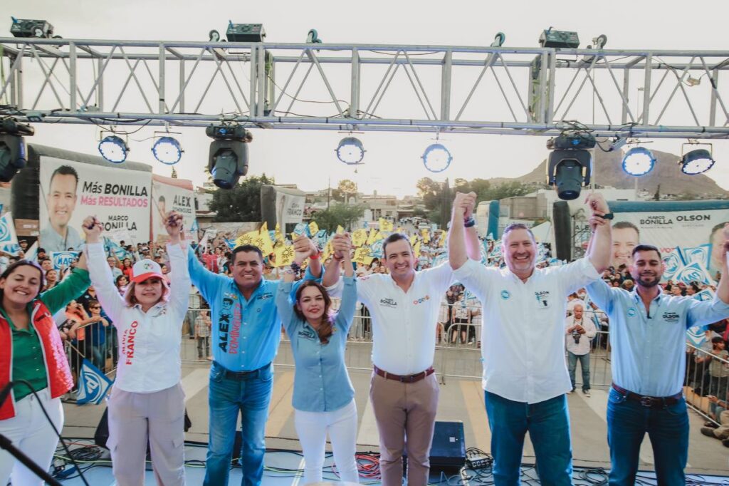 El candidato a presidente municipal de la coalición “Juntos Defendamos a Chihuahua”, Marco Bonilla, asistió al cierre de campaña del candidato a diputado local por el Distrito 17, Carlos Olson, a quien reconoció como un político defensor de la familia y aliado en el Congreso del Estado.