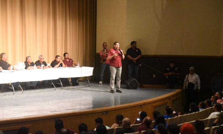 Ciudad Juárez, Chih. – En un evento clave para su campaña, el candidato a la alcaldía por la coalición “Sigamos Haciendo Historia por Chihuahua”, Cruz Pérez Cuéllar, expuso sus propuestas durante la décima asamblea general ordinaria del Sindicato Único de Trabajadores del Municipio (SUTM).