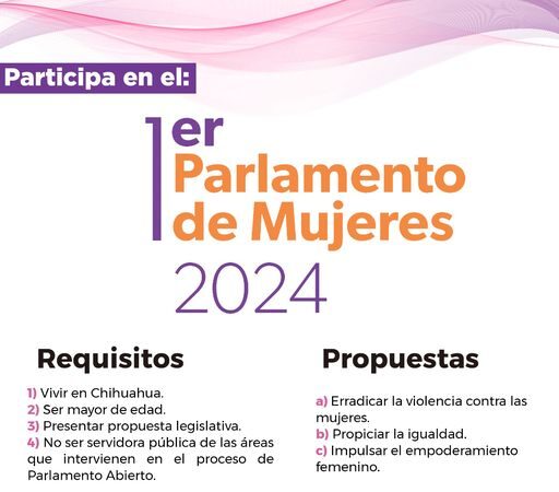 El Congreso del Estado invitó a participar en la Convocatoria para integrar el Primer Parlamento de Mujeres en la historia de Chihuahua y contribuye en mejorar las condiciones para las mujeres.