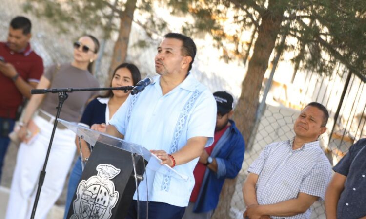 El Presidente Municipal, Cruz Pérez Cuéllar, encabezó la entrega de los trabajos de rehabilitación en la Telesecundaria Tarahumara, ubicada en la calle Creel, de la colonia Tarahumara, en la zona poniente de la ciudad.