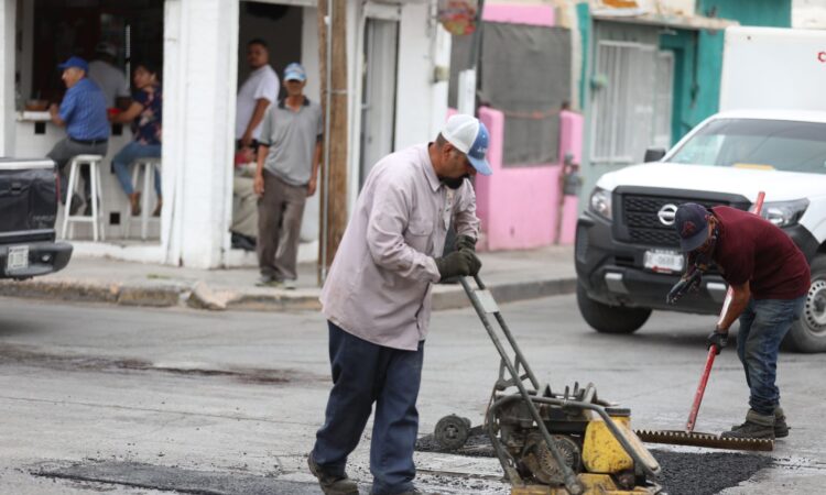 A través del programa de mejoramiento de vialidades, personal de la Dirección General de Obras Públicas trabajó con operativo durante esta semana para tapar baches de la calle Paseo de San Carlos, en la colonia las Arcadas.