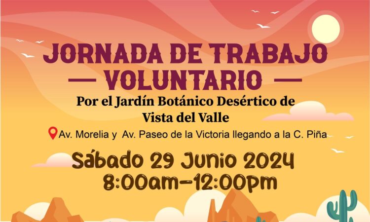 La Dirección de Parques y Jardines invitó a los habitantes del fraccionamiento Vista del Valle a unirse a la jornada de voluntariado por el jardín botánico del lugar, actividad que será el próximo sábado 29 de 8:00 de la mañana a 12:00 del mediodía, dio a conocer Daniel Iván Zamarrón Saldaña, titular de la dependencia.