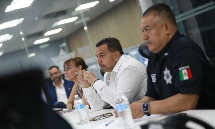 El Presidente Municipal, Cruz Pérez Cuéllar, encabezó este día la reunión de la Mesa de Coordinación para la Construcción de la Paz, junta que se llevó a cabo en el Centro de Emergencia y Respuesta Inmediata (CERI) de la Secretaría de Seguridad Pública Municipal.