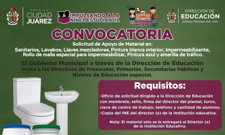 El Gobierno Municipal, a través de la Dirección de Educación, invita a las escuelas públicas de la ciudad a participar en el programa “Mi Patria Inicia en mi Escuela”, que tiene como objetivo apoyar con material para mejora de los planteles.