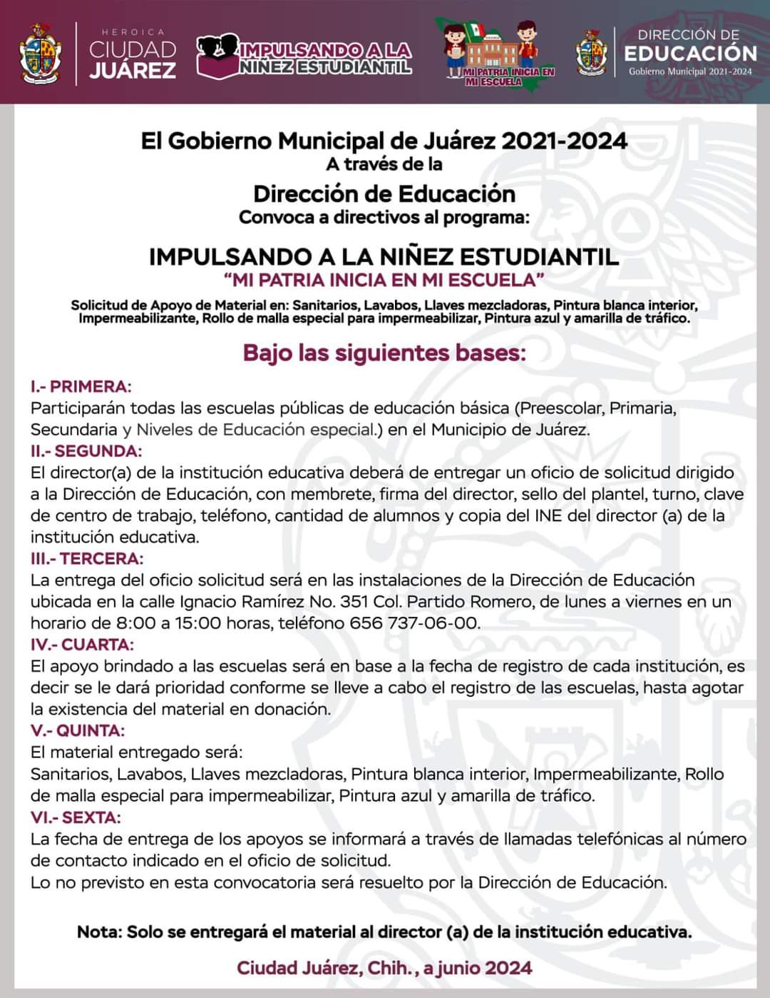 Para cualquier duda o aclaración, los interesados pueden comunicarse al número telefónico (656) 737-06-00.