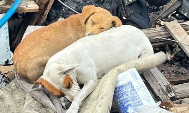 Compañeros de toda la vida Cheto y Nena hoy sufren también las pérdidas… al quedarse sin su cama, sin su plato de comida, sin su recipiente de agua… sin su hogar, pero el dolor hoy los une.