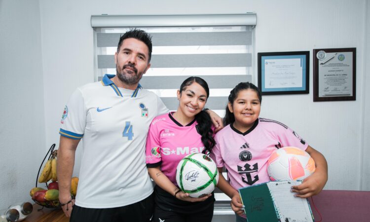Gilberto Gutiérrez, subdirector del DIF Municipal y la futbolista también se reunieron con niñas, niños y adolescentes que pertenecen al equipo Académicos FC, a todos se les obsequiaron balones de futbol autografiados por la deportista.Celeste tiene gran experiencia dentro del futbol profesional, ha jugado en equipos de la Liga MX Femenil como Rayadas de Monterrey, así como Bravas del FC Juárez, último club en el que jugó siendo pieza clave
