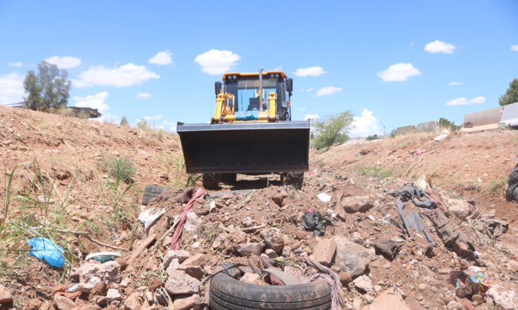 Con maquinaria pesada, personal de la dependencia en mención se encarga de retirar la basura acumulada, además de remover el escombro que la ciudadanía deposita en estos espacios, esto, para evitar taponamientos que a su vez podrían derivar en una inundación.