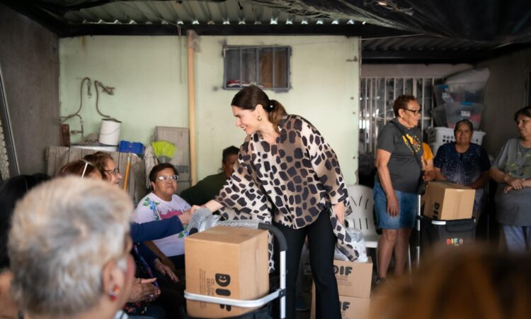 La presidenta del DIF hizo estas visitas con el propósito de realizar la entrega de despensas con productos de la canasta básica, además escuchó las inquietudes que le compartió cada una de las usuarias y usuarios de los CAM.