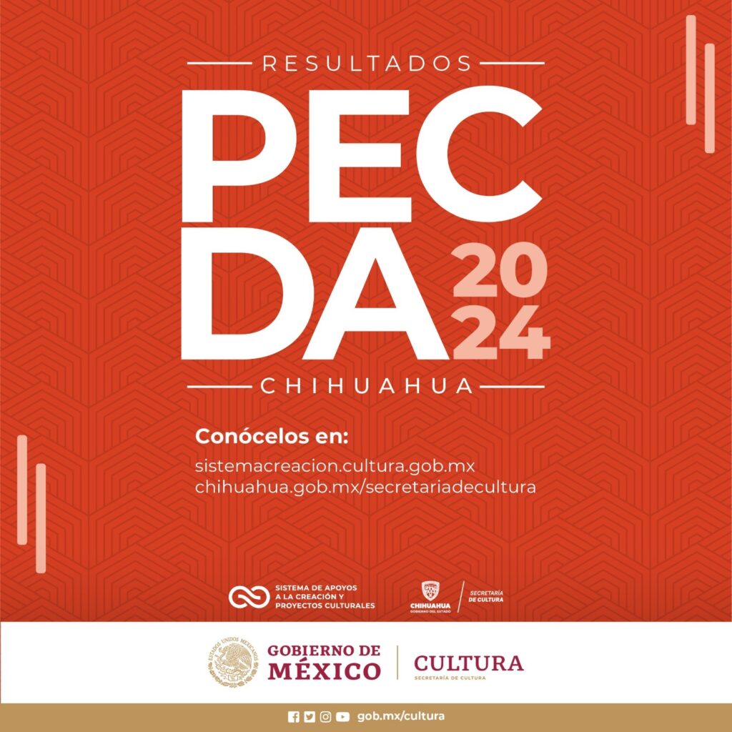La Secretaría de Cultura de Chihuahua, en coordinación con la Secretaría de Cultura Federal y a través del Sistema de Apoyos a la Creación y Proyectos Culturales (Sacpc), dio a conocer los resultados de la convocatoria del Programa de Estímulo a la Creación y Desarrollo Artístico (Pecda) “David Alfaro Siqueiros” 2024.