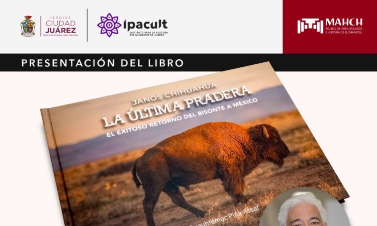 El Instituto para la Cultura del Municipio de Juárez (IPACULT) invita a la presentación del libro “La Última Pradera: El Exitoso Retorno del Bisonte a México”, que se llevará a cabo el próximo viernes 13 de septiembre a las 6:30 de la tarde en el Museo de Arqueología e Historia de El Chamizal (MAHCH).