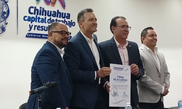 Este viernes el alcalde Marco Bonilla firmó un acuerdo de colaboración con Mario Carrasco presidente de Jcas y con Alan Falomir director general de Jmas, en apoyo a la Convención y Expo Aneas 2024, la cual se realizará del 19 al 22 de noviembre en el Centro de Convenciones de Chihuahua.