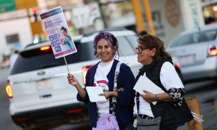 A fin de crear conciencia en la población y buscar que cada vez más mujeres realicen cuidados preventivos para detectar el cáncer de mama, la tarde de este viernes empleadas, directoras y regidores del Gobierno Municipal 2024-2027 acudieron al Puente Rotario a entregar información sobre este padecimiento.