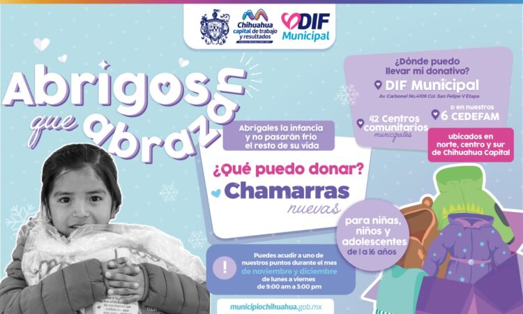 Se solicita a la ciudadanía que las chamarras a donar sean exclusivamente nuevas, a fin de llevar un abrigo digno que haga más cálido el invierno para las NNA del municipio de Chihuahua.