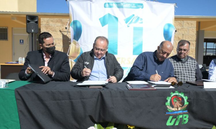 En el marco de los festejos por el onceavo aniversario de la Universidad Tecnológica de La Babícora (UTB) en Ciudad Madera, Chihuahua, se llevó a cabo la firma de un convenio de colaboración entre la UTB y la Universidad Autónoma de Chihuahua, acto encabezado por el Rector Rivera Campos.