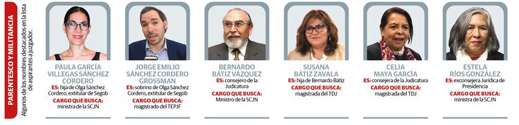 Cercanos al guinda buscan ingresar al PJ; hija de Sánchez Cordero busca ser ministra y su sobrino, magistrado; consejero de la Judicatura quiere ser ministro y su hija, magistrada; también se apuntan Ulises Lara, Celia Maya…; va para jueza, Delia Quiroa, madre buscadora, para “comprobar simulación”; en lista de 18 mil del comité del Ejecutivo, nombres repetidos.
