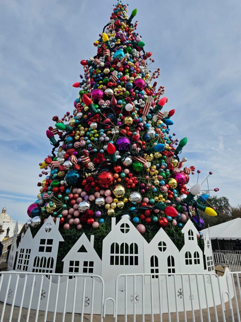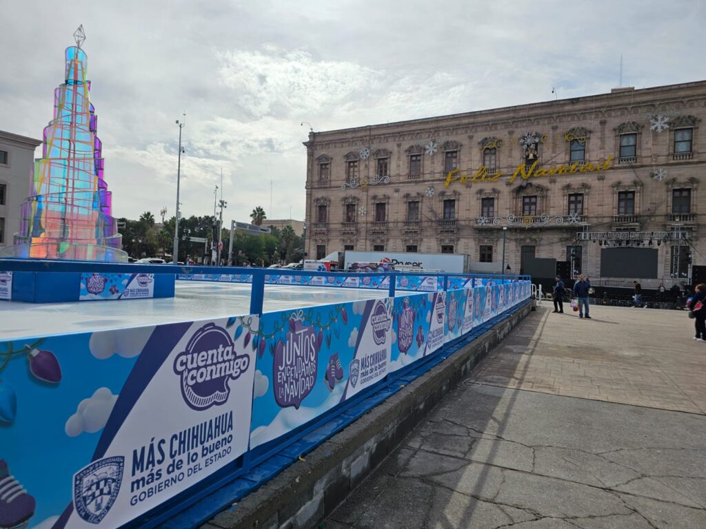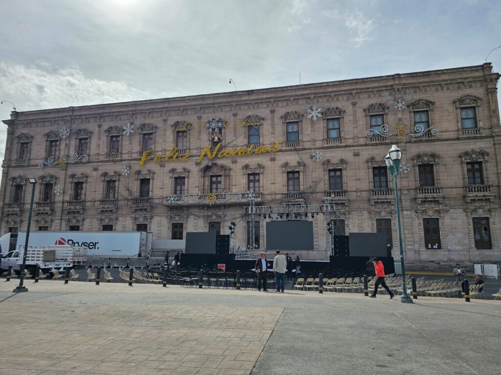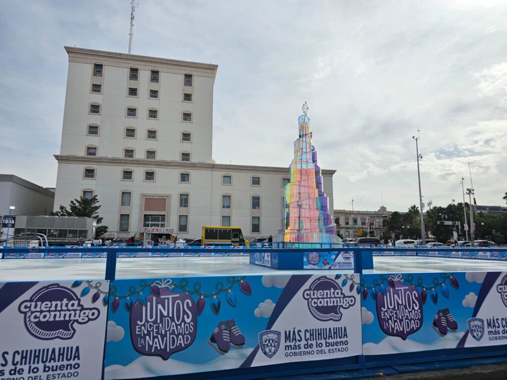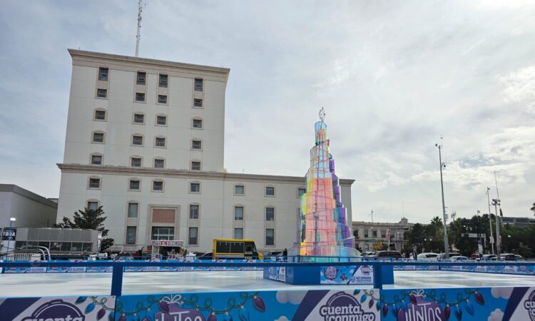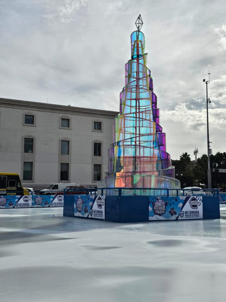 En la Plaza del Ángel, todo esta listo para que la gobernadora Maru Campos presione el botón de encendió al árbol navideño.