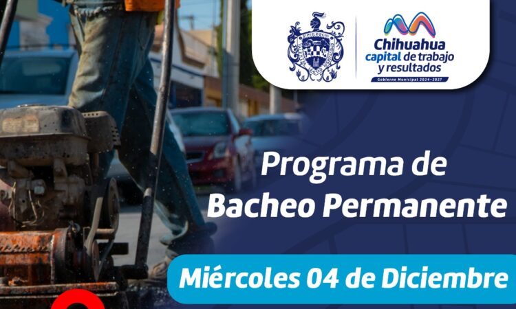 El Gobierno Municipal realizará bacheo este 4 de diciembre en calles de las colonias Lomas Vallarta, Los Portales, Fraccionamiento Paseos del Camino Real y en la avenida California.