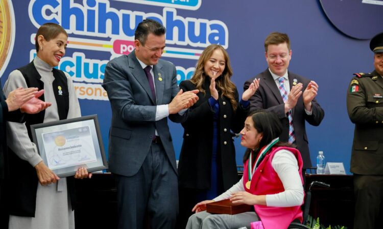 El alcalde Marco Bonilla y los miembros del H. Ayuntamiento de Chihuahua, entregaron durante sesión solemne de Cabildo, el Premio Municipal Chihuahua por la Inclusión Social de Personas con Discapacidad, en su quinta edición, a los ganadores: en categoría Persona Física, a Lorena Velázquez Sandoval, y en categoría Persona Moral al “Centro de Estudios para Invidentes A.C. (CEIAC)”.