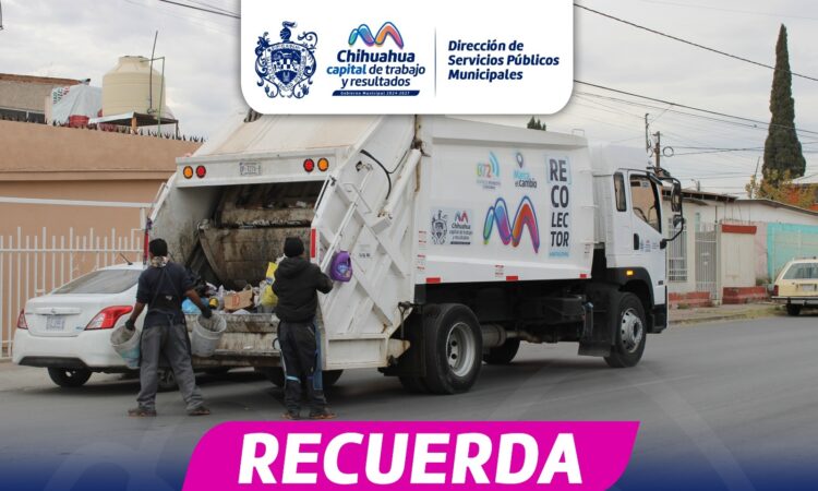 Con motivo de la celebración de las fiestas decembrinas, el Gobierno Municipal, a través de la Dirección de Servicios Públicos Municipales recuerda a la población en general que los días 25 de diciembre y 1 de enero, el servicio de recolección de basura se suspenderá.