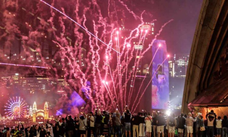 El espectáculo de 12 minutos se extendió 7 kilómetros a lo largo del puerto de Sídney y contó con 23 mil disparos pirotécnicos individuales y más de 13 mil proyectiles aéreos.