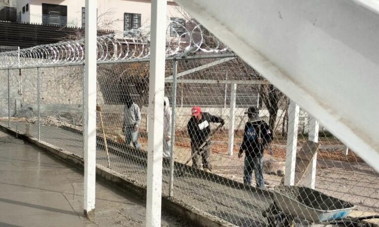 El funcionario señaló que los trabajos consisten en el levantamiento de muros de block, colocación de firme de concreto en andadero, así como la preparación de piso para la instalación de pasto sintético en la cancha de fútbol rápido.