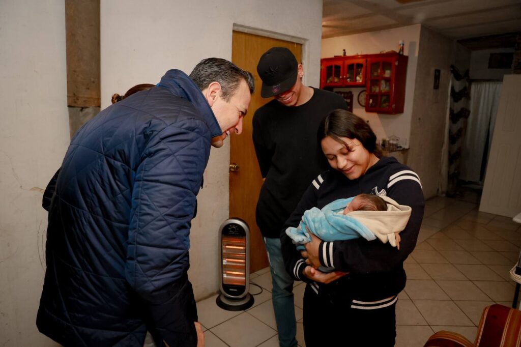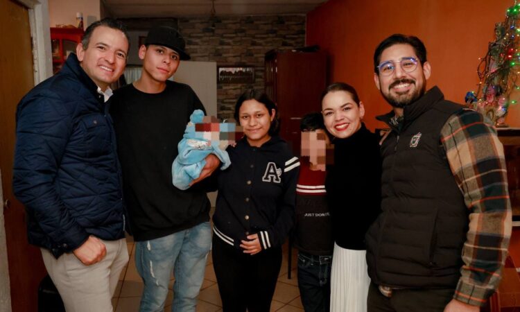 El alcalde Marco Bonilla, su esposa, la presidenta del DIF Municipal Karina Olivas y el director del IMPAS Luis Arrieta, llevaron obsequios a los padres del niño Dashiel Yalanie, por ser el primer bebé nacido en el 2025.