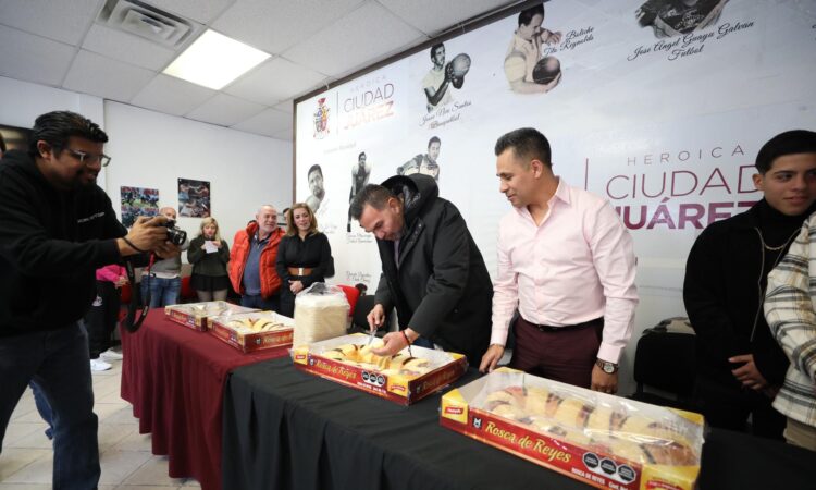 El edil y el titular del IMDEJ, Juan Carlos Escalante Suárez, partieron la primera rebanada de la tradicional rosca de reyes.