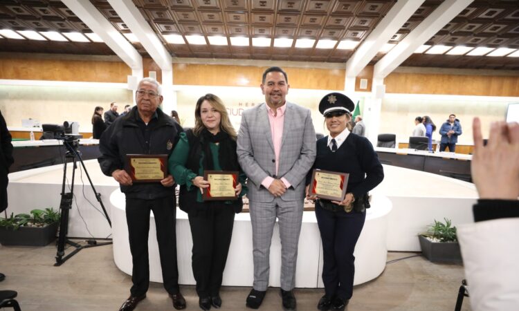 A nombre del Cabildo de Juárez, el Presidente Municipal, Cruz Pérez Cuéllar entregó el Reconocimiento al Mérito al Servidor Público para Empleados del Municipio a tres trabajadores que se han destacado por ser ejemplo de empatía y entrega en sus labores.