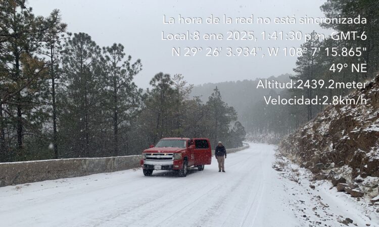 El pasado miércoles 8 de enero, se reportó caída de nieve en 27 municipios: Ascensión, Bachíniva, Belisario Domínguez, Carichí, Casas Grandes, Coyame, Cuauhtémoc, Cusihuiriachi, Galeana, Gómez Farías, Gran Morelos, Guadalupe y Calvo, Guerrero, Ignacio Zaragoza, Janos, Madera y Matachí.También en Namiquipa, Nonoava, Nuevo Casas Grandes, Ocampo, Riva Palacio, San Francisco de Borja, Santa Isabel, Temósachic, Urique y Uruachi.