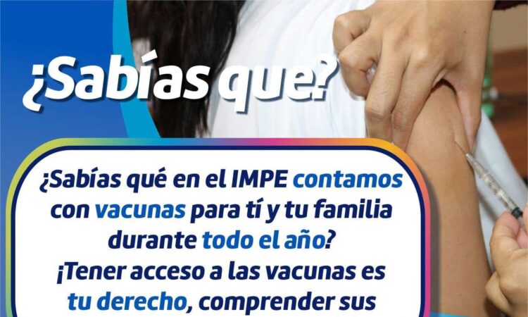 - Desde el IMPE ofrece servicio de vacunación para derechohabientes y comunidad en general.