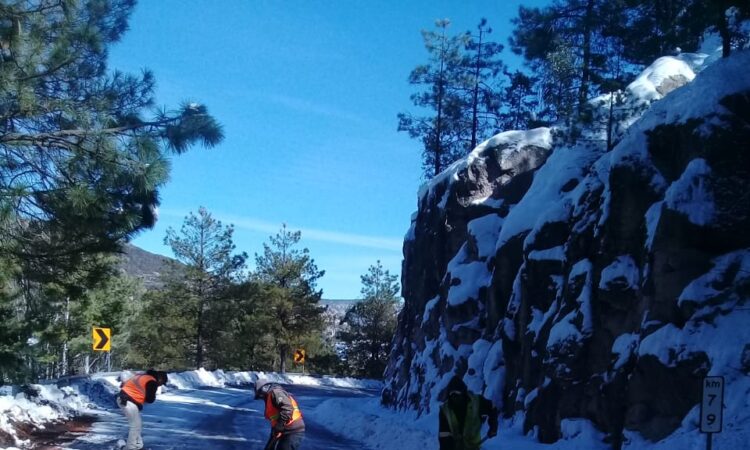 La Secretaría de Comunicaciones y Obras Públicas (SCOP), informó que la carretera San Juanito-Basaseachi fue abierta al tránsito vehicular, luego de realizados los trabajos para la remoción de la nieve acumulada en la carpeta asfáltica.