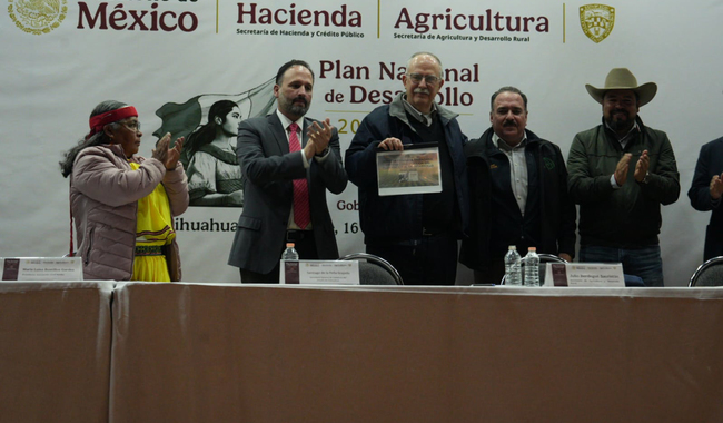 Finalmente, la presidenta de la Asociación Civil Natika y embajadora en la Organización de las Naciones Unidas por la defensa del medio ambiente, María Luisa Bustillos Gardea, y el presidente del Consejo Estatal Agropecuario, Arturo González Ruíz, entregaron sus propuestas sobre los efectos que ha tenido el cambio climático en la Sierra Tarahumara y sobre las medidas para revertir el deterioro, además del financiamiento, sustentabilidad y comercialización de granos básicos en el sector agropecuario, respectivamente.www.gob.mx/agricultura