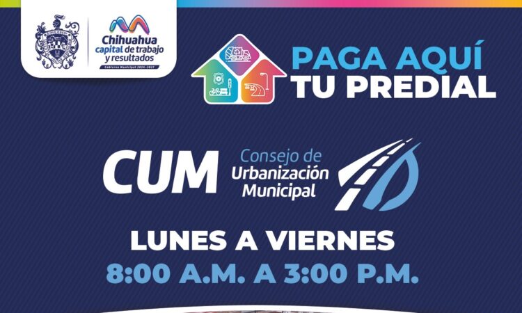 El Gobierno Municipal, a través de Tesorería, informa que, a partir del lunes 20 de enero, en las instalaciones del Consejo de Urbanización Municipal (CUM) podrán pagar su Predial y diversos trámites, ya que se contará con una caja receptora en este espacio.