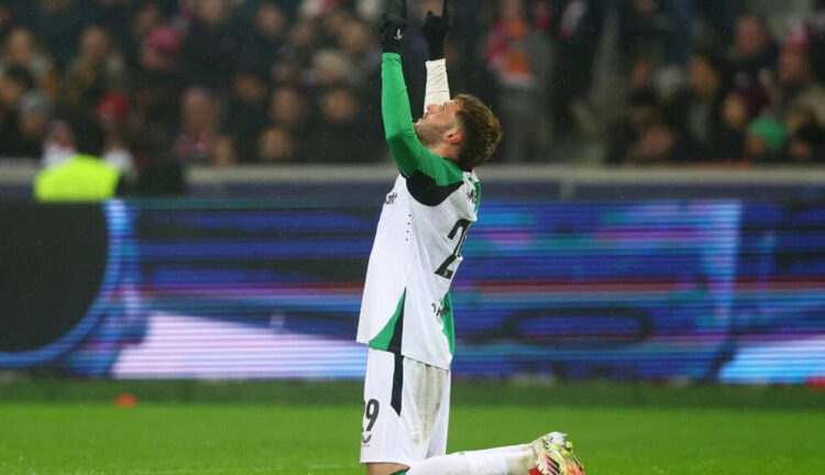 El histórico gol de Santi Giménez se dio al minuto 14’, en un tiro de esquina pasado a segundo poste, donde apareció el defensa Gernot Trauner bajando el balón de cabeza al corazón del área chica, donde el mexicano apareció para rozar con la parte interna del botín derecho y mandar a guardar el esférico al fondo de la red.