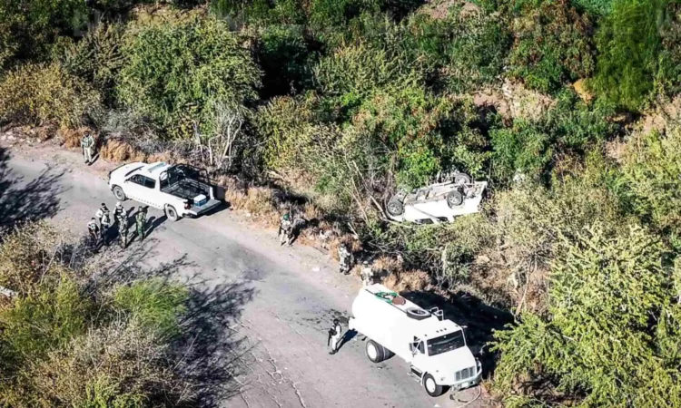 Militares perseguían a sujetos armados sobre la carretera La 12, cuando uno de sus vehículos volcó y se incendió. A raíz de esta situación dos elementos del Ejército mexicano murieron calcinados, además de que otros dos tuvieron lesiones.